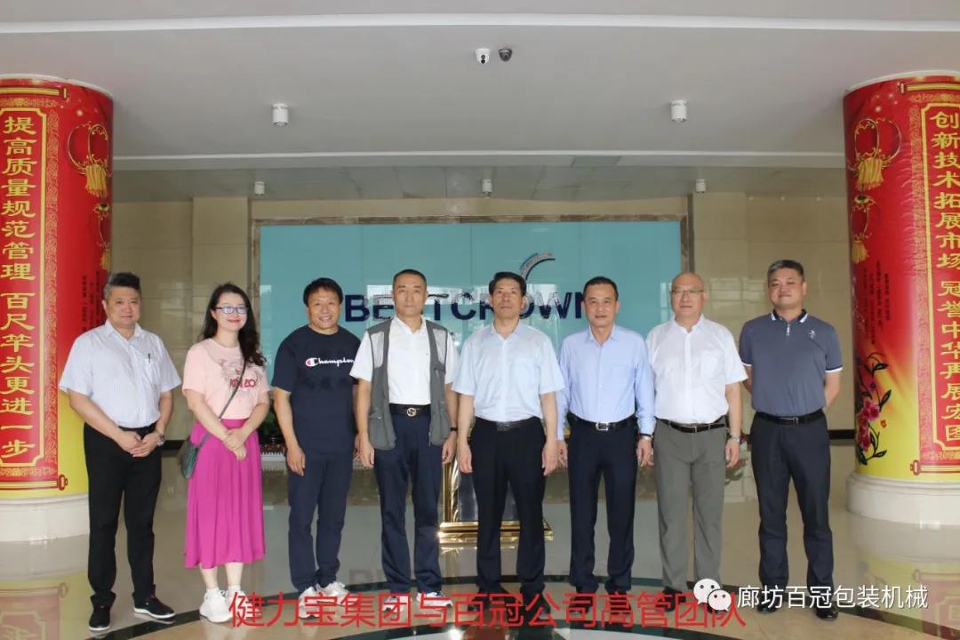 面對活躍而多變的飲料市場,國民飲料健力寶,始終著眼于消費者的需求變化,不斷豐富產品矩陣,只為滿足人們不同口味、不同場景的潮飲需求。2021年7月,健力寶集團董事長葉紅漢先生與其高管團隊對廊坊百冠進行了參觀考察,百冠公司董事長杜振清、總經理張文革、技術總監高郁林等高層領導陪同。雙方就高速新型多功能無菌線的技術及應用、產業鏈的集成和市場格局等話題進行了深入的交流。終端市場的需求變化和飲料生產企業的裝備升級,供應商企業該如何突破技術瓶頸并贏得發展,供需雙方如何打造無菌市場新格局,雙方就以上共同關心的問題交換了意見。